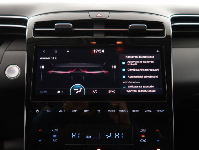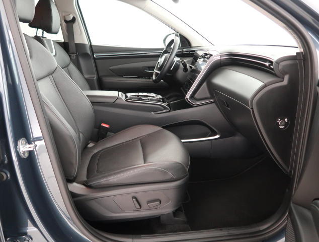 Tento Hyundai Tucson, původem z ČR, je hybridní vůz s automatickou převodovkou. Je vybaven výkonným benzínovým motorem 1.6 T-GDI 48V MHEV s výkonem 110 kW. Vozidlo je vybaveno servisní knížkou obsahující přehled o provedené údržbě, přičemž poslední servis proběhl 4. července 2025. Vůz nabízí odvětrávaná kožená sedadla, která jsou vyhřívaná vpředu i vzadu. Klimatizace je automatická pro pohodlné nastavení teploty. Full LED světlomety zlepšují viditelnost. Přístrojový štít s virtuálním kokpitem přináší moderní zobrazení informací. Bezdrátové dobíjení telefonu zvyšuje komfort při cestování.