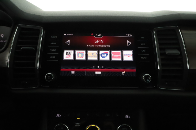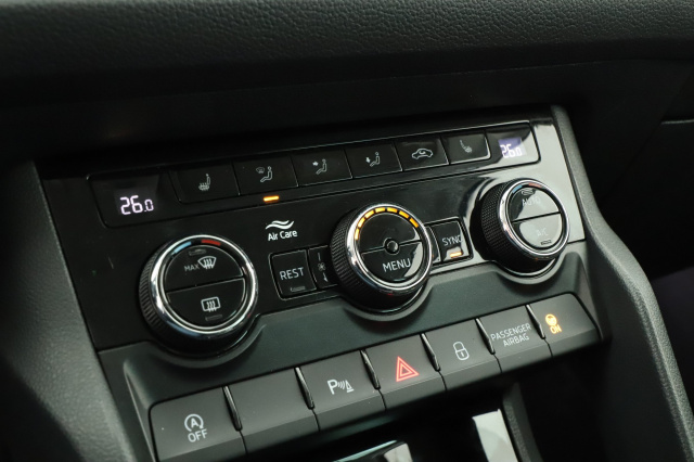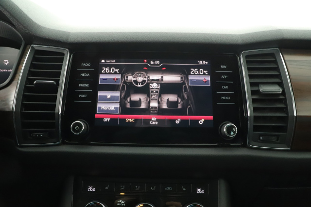 Tato Škoda Kodiaq, původem z ČR, je vybavena automatickou převodovkou a pohonem 4x4. Má výkonný benzínový motor 2.0 TSI s objemem 1984 ccm a výkonem 140 kW. Je možné uplatnit odpočet DPH. Vůz disponuje adaptivními Full LED světlomety a přístrojovým štítem s virtuálním kokpitem. Sedadla jsou částečně kožená, Alacantrová a vyhřívaná vpředu i vzadu. Klimatizace je automatická. Kožený volant je vyhřívaný, multifunkční a s řazením pádly, což zvyšuje komfort při řízení.